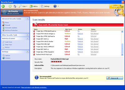 Security Guard is a new fake Antivirus. This rogue drops files on the system and detects them as infected to scare users; files are filled with junk data and do not represent a risk. It replaces